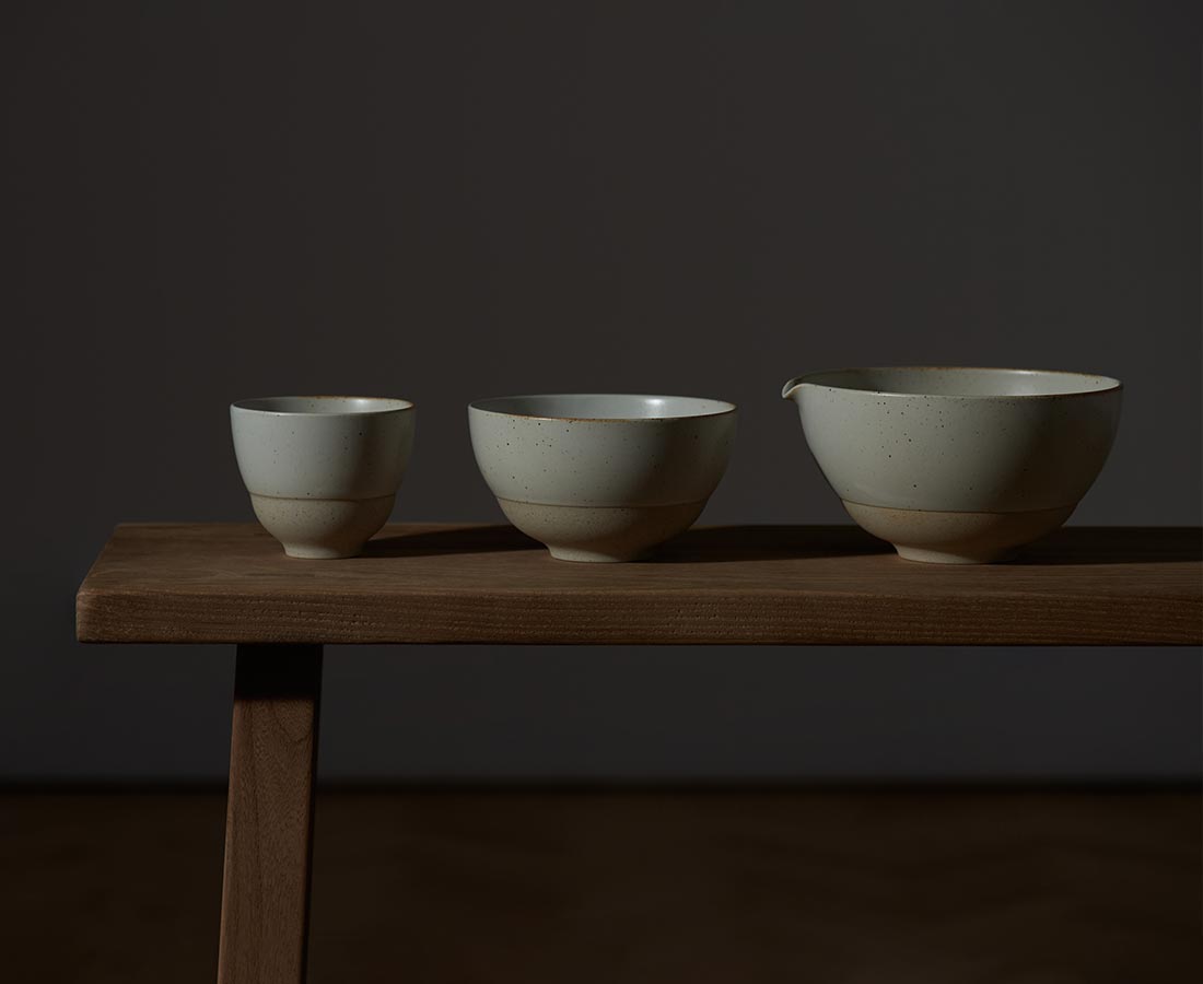 Porcelain tea bowl with spout for preparing and serving matcha.