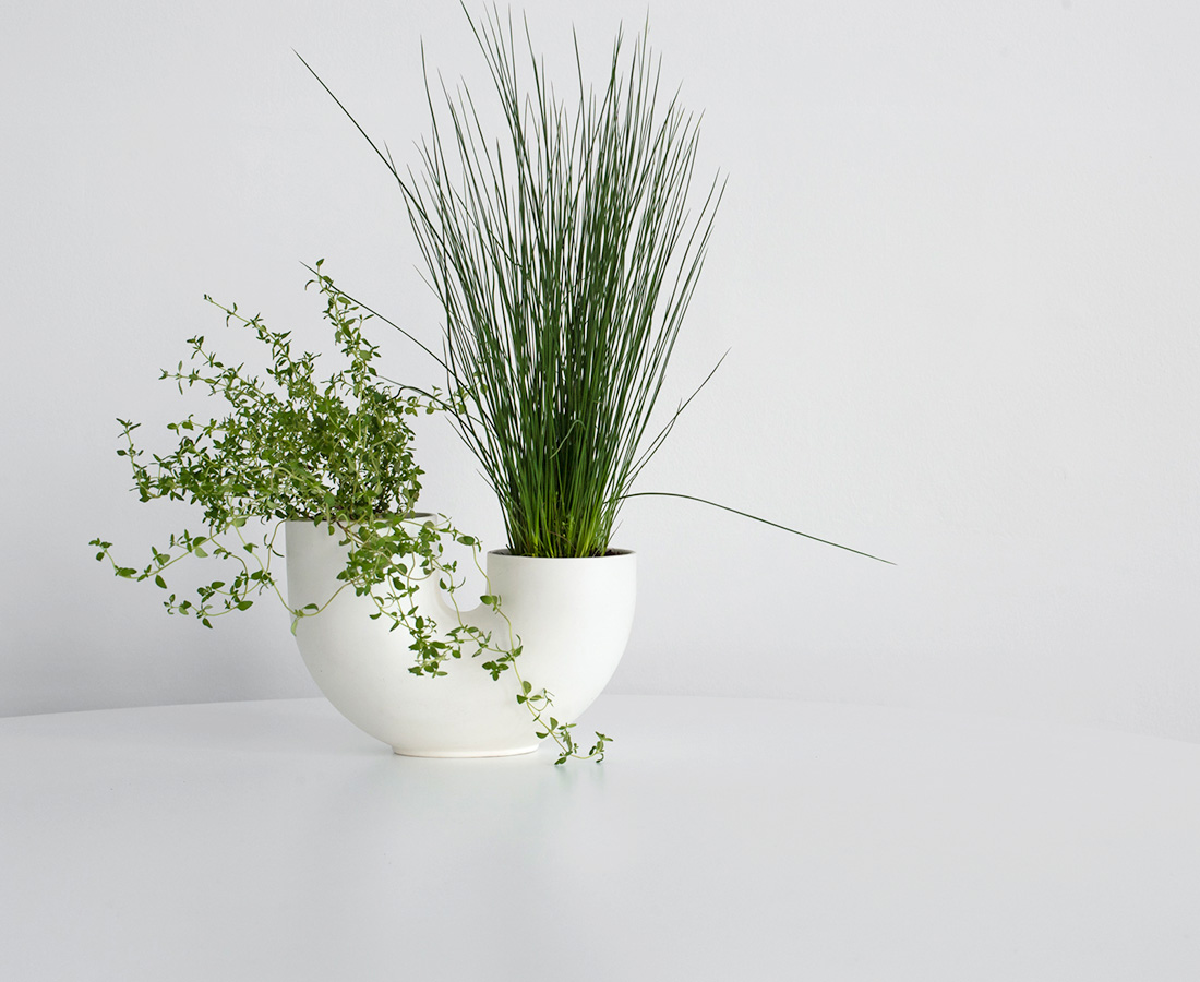 Herbs, decorative plants and cacti have become an integral part of contemporary living. Weather in the kitchen, bathroom or bedroom this Tuba planter allows you to combine two complementary plants into a single deliberate form.